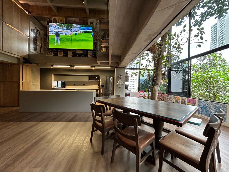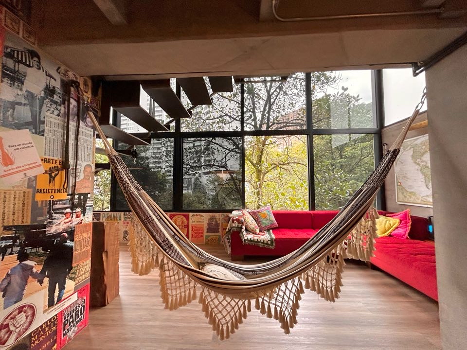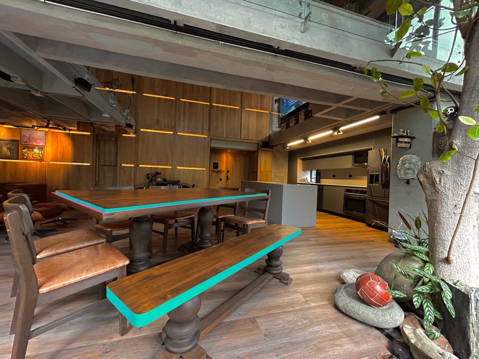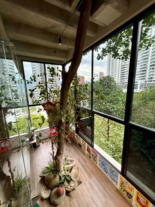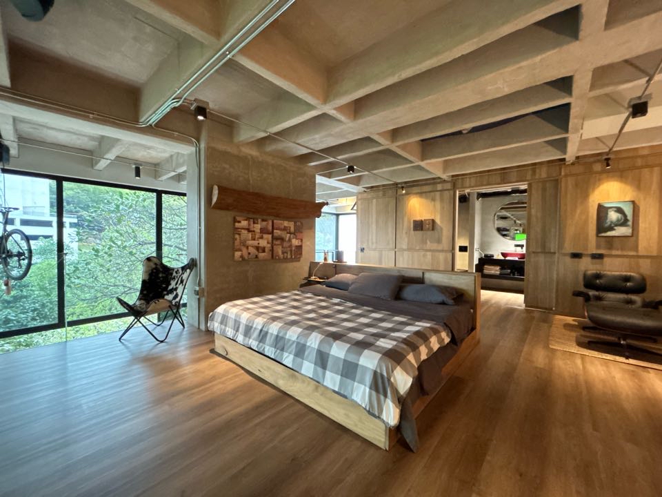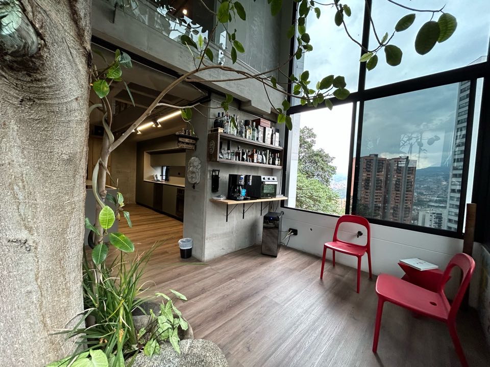 Apartamento con doble altura rodeado de naturaleza y sin ruido. En el medio del apartamento tiene un hermoso árbol natural que le da un toque único.
