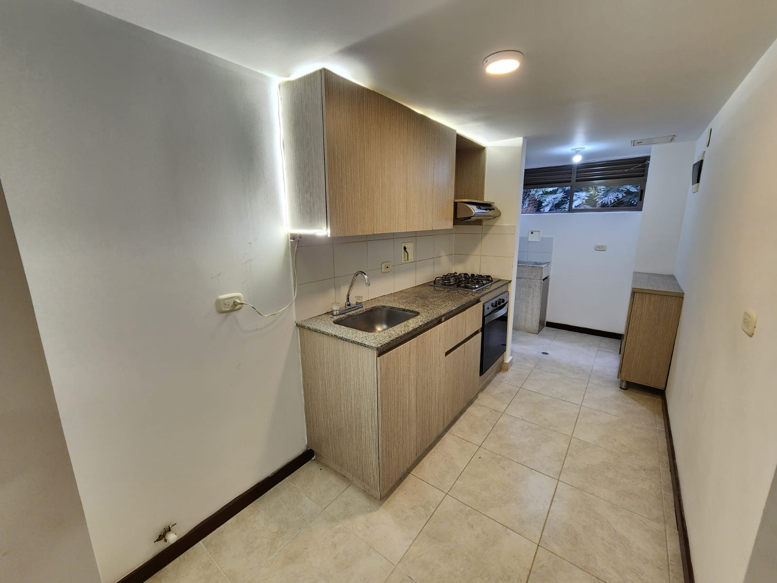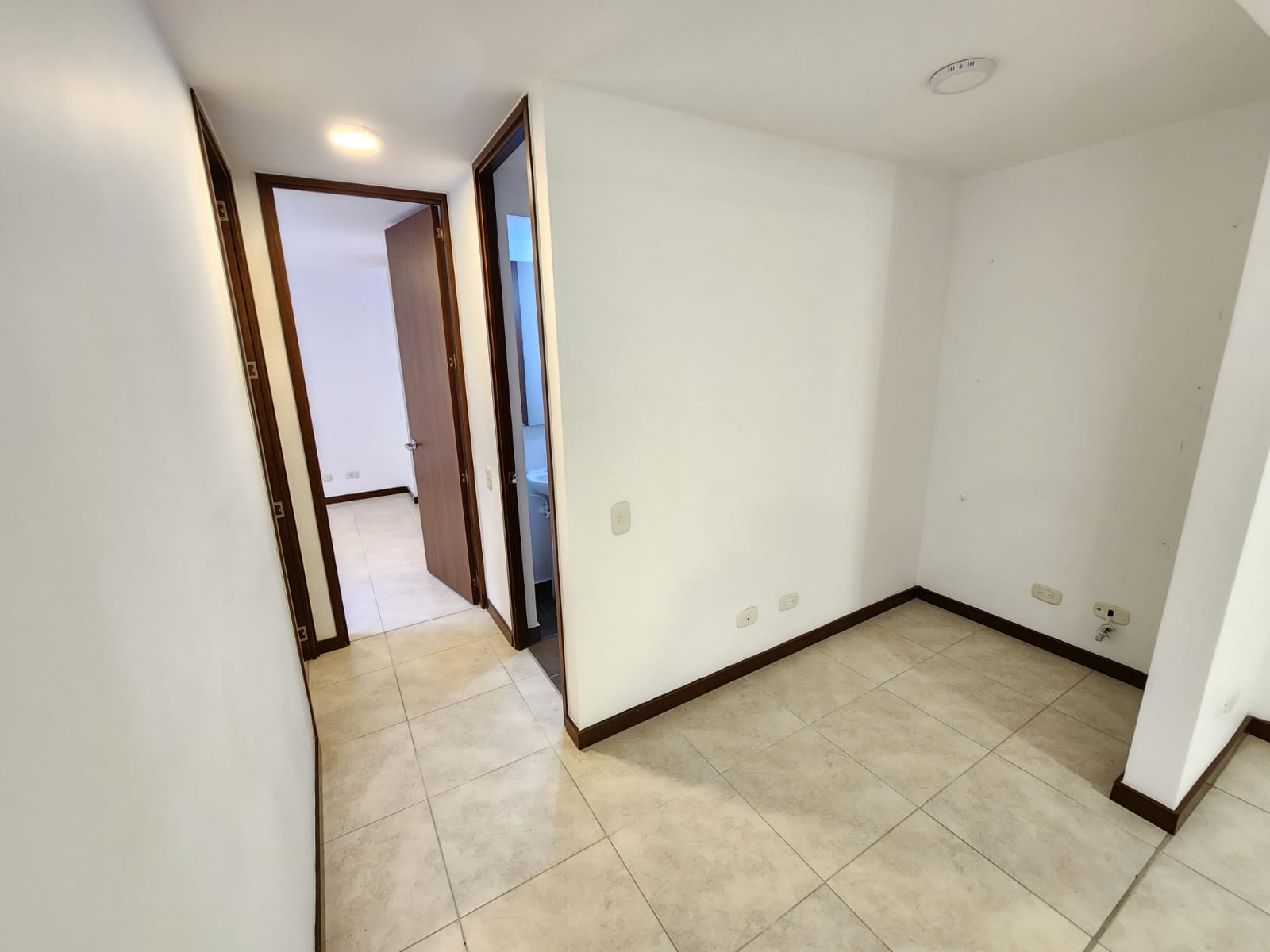 El apartamento cuenta con 64 m2, es primer piso, sala comedor, cocina integral, zona de ropas, balcón con vista a verde al frente, baño social completo, espacio para estudio, habitación auxiliar con closet y la habitación principal con baño y vestier.