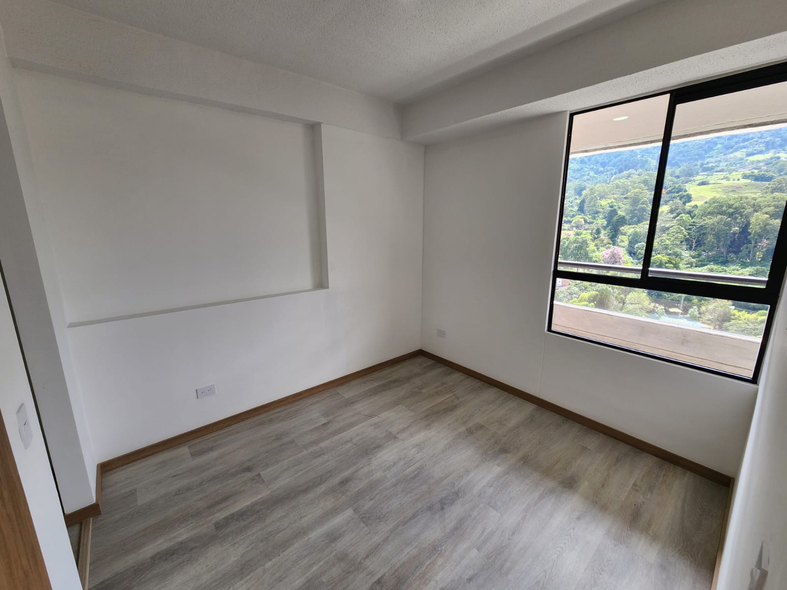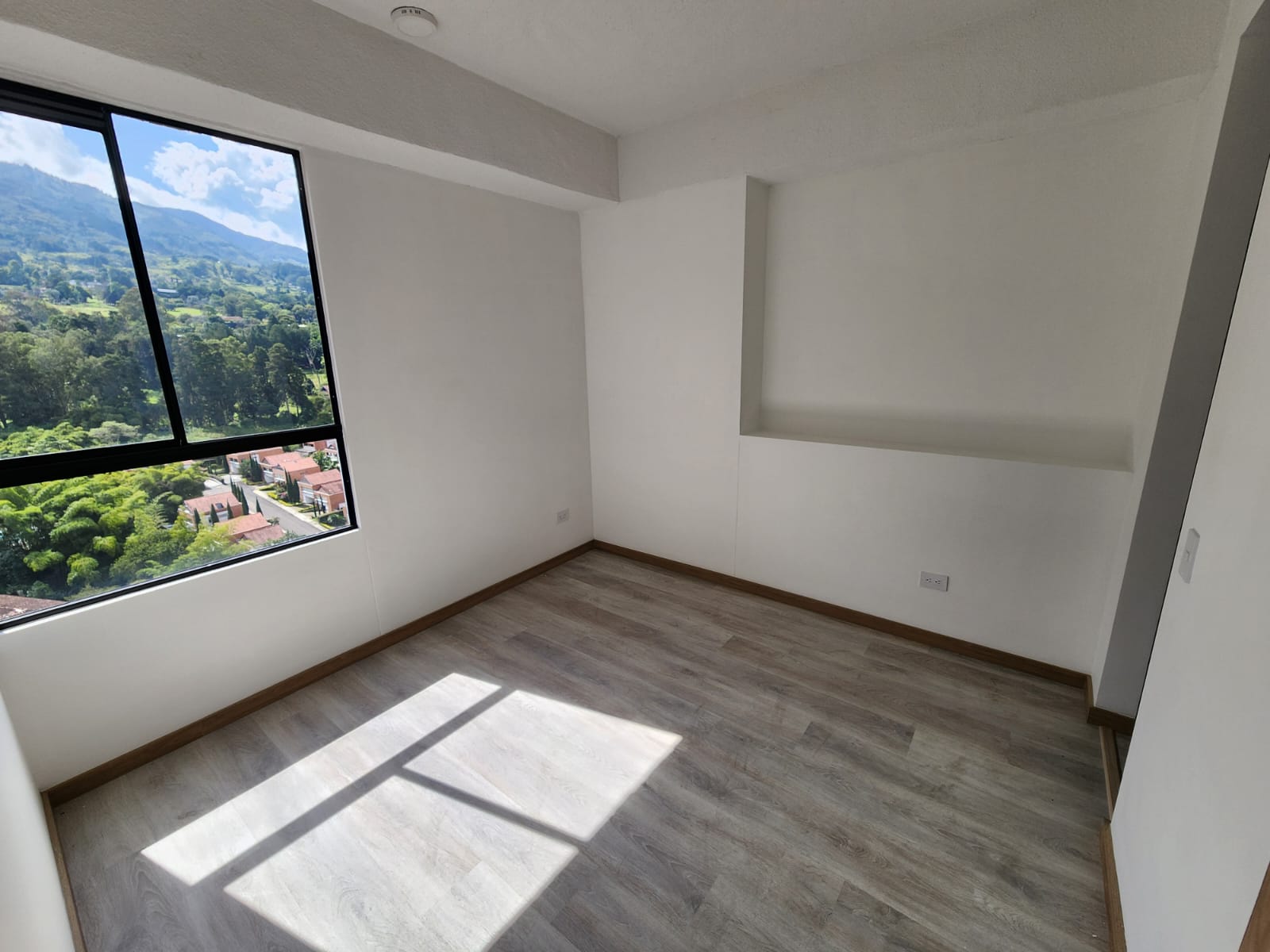 El apartamento cuenta con un área de 66 m2, cocina integral , zona de ropas independiente, sala comedor, balcón amplio con vista panoramica, 1 baño social completo, habitación auxiliar con vestier y la habitación principal con baño y vestier.
